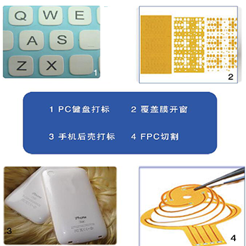 主要用于各種玻璃、液晶屏、紡織品、薄片陶瓷、半導體硅片、IC晶粒、藍寶石、聚合物薄膜、噴油層、電鍍層、FPC等材料的打標、表面處理和切割。